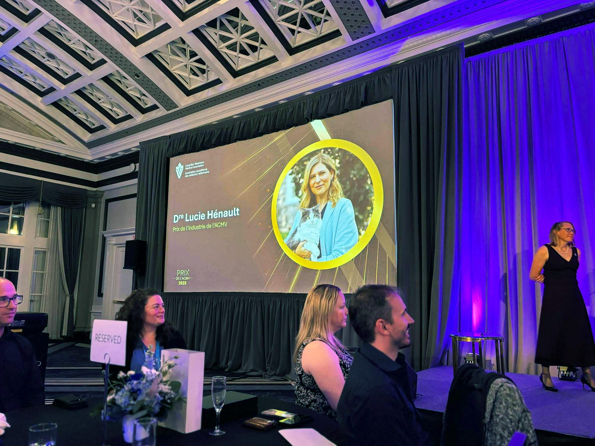 C’est avec beaucoup de fierté que nous avons annoncé que Dre Lucie Hénault, présidente et fondatrice de Flair & cie, a été nommée lauréate du Prix de l’industrie 2025, remis par l’Association canadienne des médecins vétérinaires (ACMV). La remise officielle a eu lieu lors du congrès annuel de l’ACMV en juin, à Victoria.